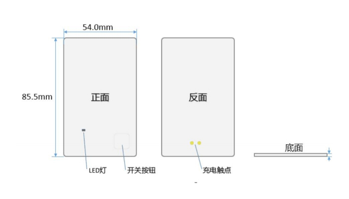 開啓/關閉藍牙卡:找到數字貨币卡片上的開關按鍵,快速按鍵,紅燈閃爍一次,數字貨币卡進入工作狀态,在按任意一個觸摸按鍵,即可讓顯示屏顯示開機畫面;再次按鍵,數字貨币卡藍燈閃爍一次,屏幕刷成白屏,卡既可進入休眠狀态;