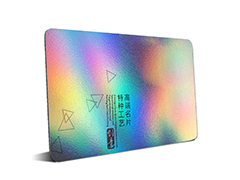 卡片印刷材料爲特殊鐳射PVC材質,顔色絢麗多彩,高檔華麗,派發客戶,彰顯個性,是制作高端會員卡、貴賓卡的首要之選,可做整版鐳射或局部鐳射效果